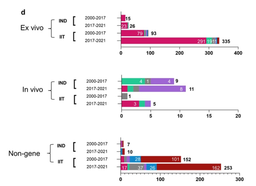 据公开数据显示,全球CGT大多数处于早期研发阶段(包括临床前研究和临床期),CGT市场处于萌芽期。我国开展的CGT临床试验数量目前位居全球第二,临床开发热情高涨。为进一步拓展这个领域,国家从十三五到十四五期间出台了很多政策与CGT相关的治疗原则,旨在加快产业发展。