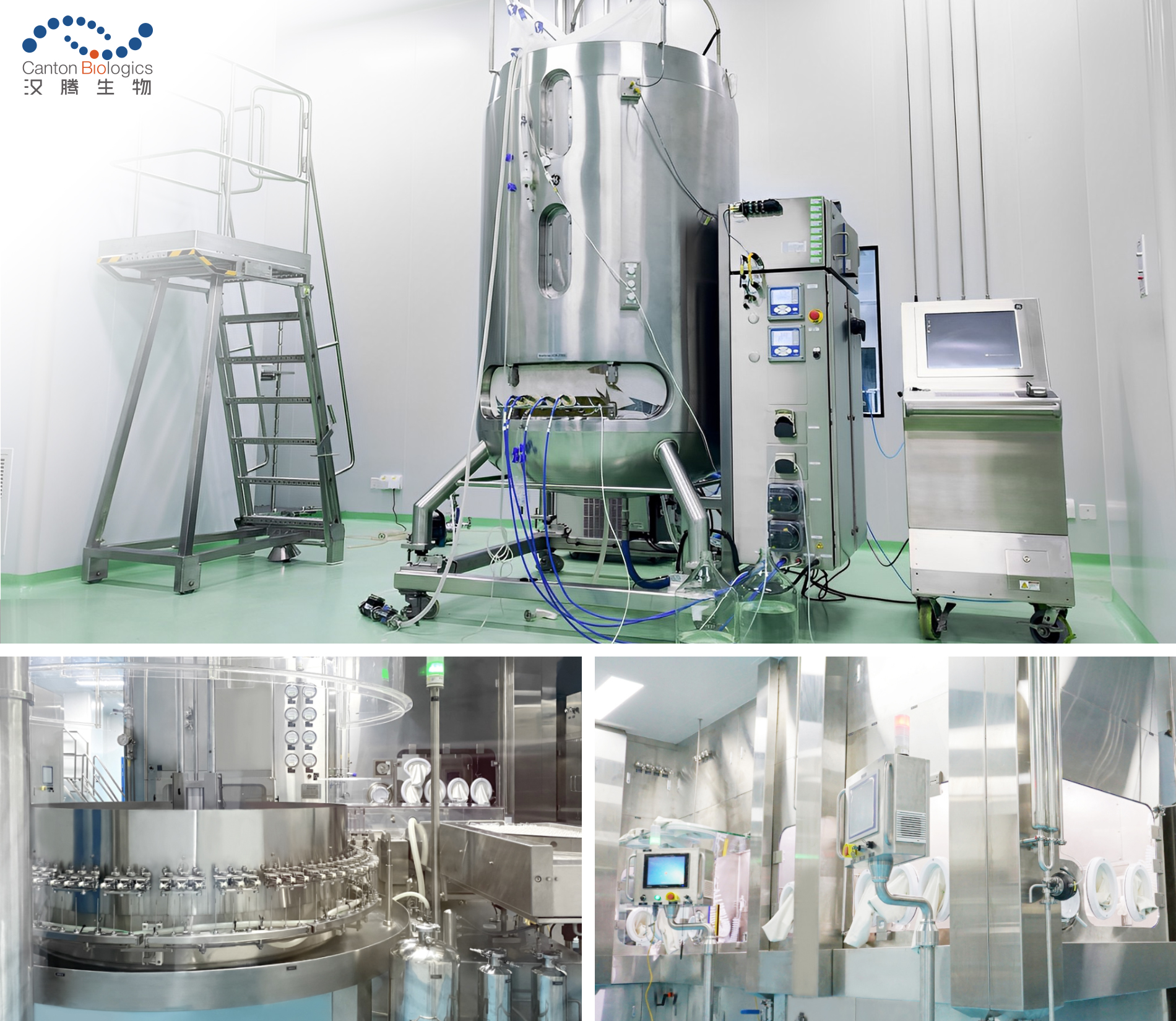 汉腾生物已建成符合国际标准的GMP生产基地,满足临床I、II、III期及商业化生产需求。基地基于QbD理念设计,质量体系符合中国NMPA、美国FDA以及欧盟EMA的要求,主要用于单抗、双抗、融合蛋白及重组蛋白等生物药的生产。目前可实现IgM从3L放大至2000L的商业化生产,并配套了相应的鼻喷制剂、西林瓶以及预灌封注射器等灌装服务,满足客户不同的剂型需求。