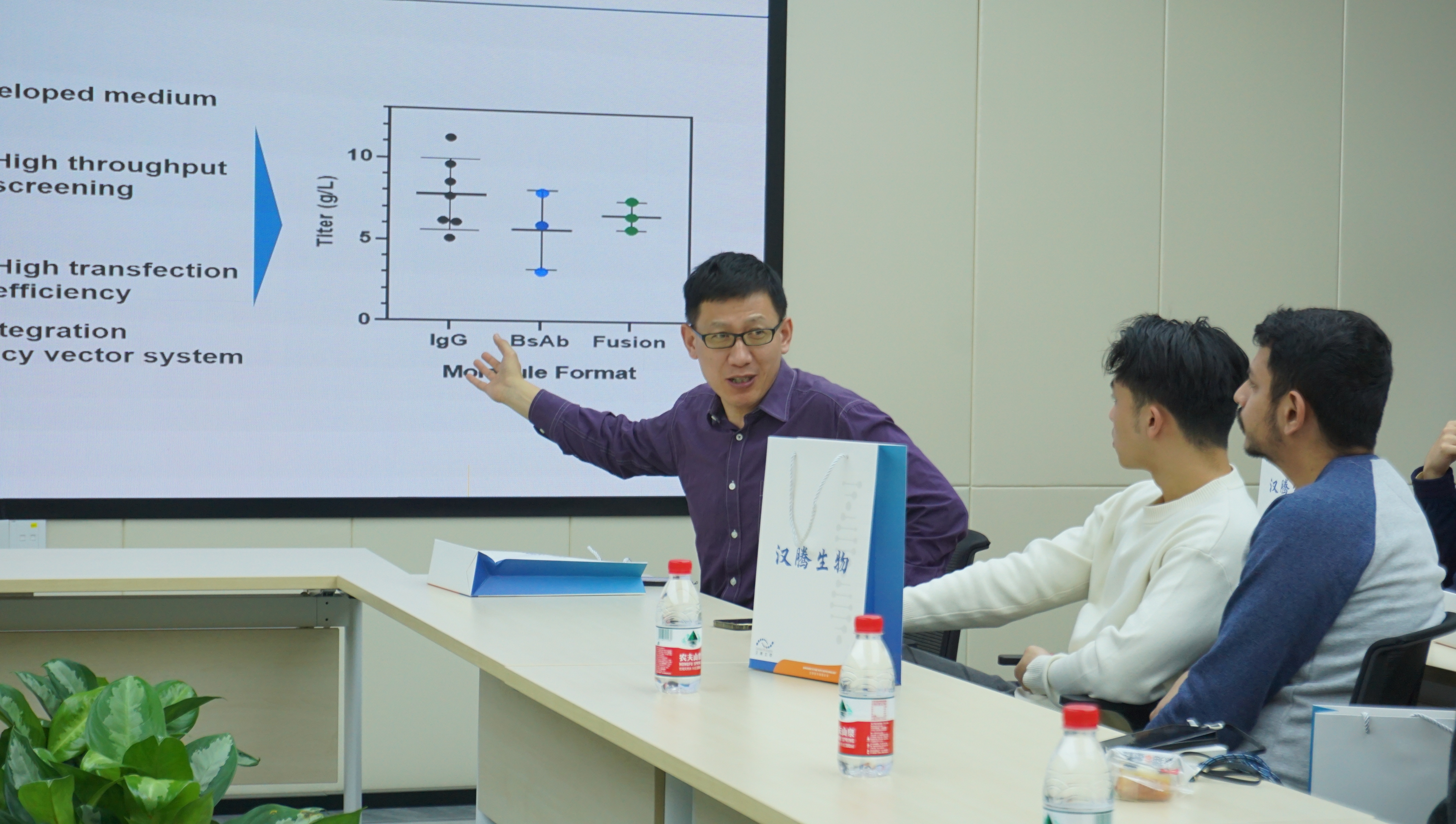 在两个半天的行程中,港科大到访团队跨越汉腾广、佛研发及生产基地,伯利恒产业基地负责人林明兴博士、高腾CGT产业基地负责人韦庆焜、昆仑产业基地质量总监卢志坚分别作主题分享。师生们对汉腾在技术研究方面的先进设备和技术表现出浓厚的兴趣,并与公司的研发人员进行了深入的交流和讨论。