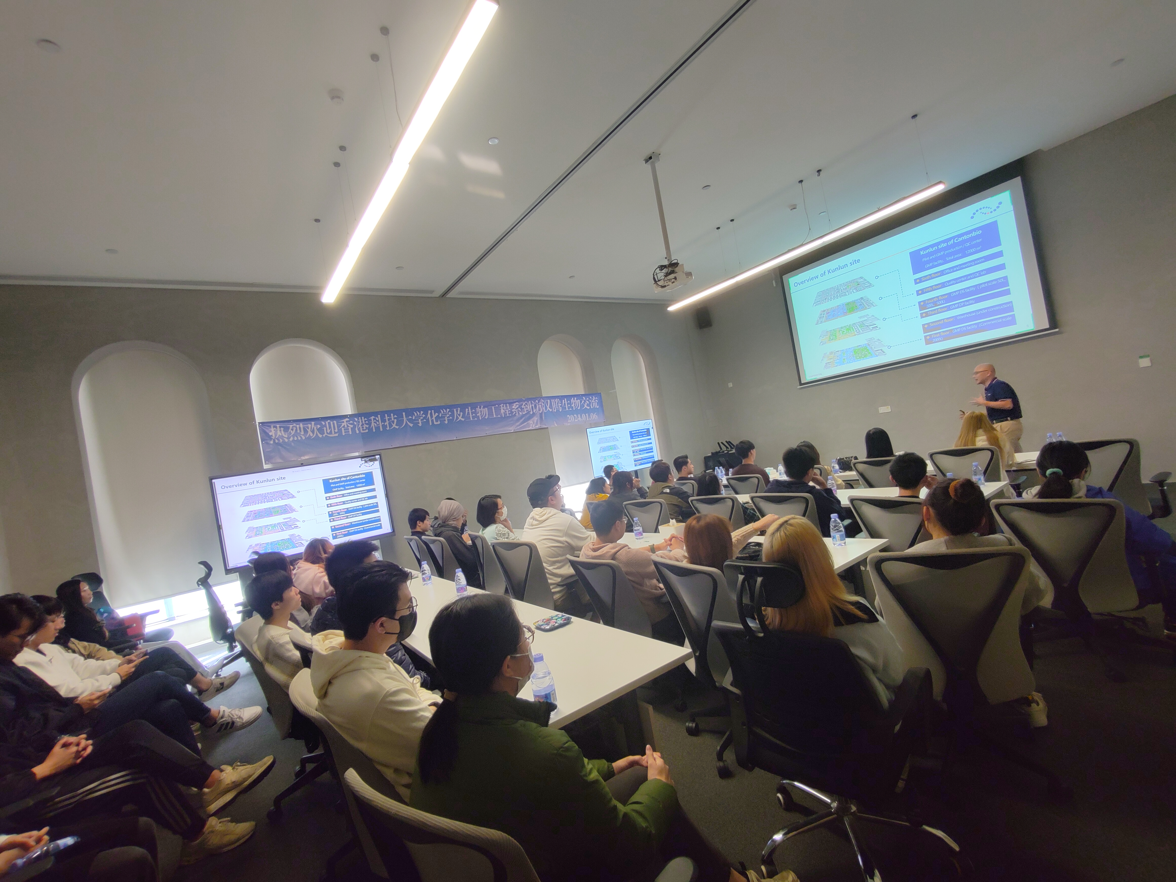 2024年1月5-6日,香港科技大学刘元帅教授带领40多名来自化学与生物工程系的师生到访汉腾生物(Canton Biologics), 副总裁张春华先生代表汉腾高管团队热情接待了来访嘉宾并作欢迎致辞。这是继2023年10月汉腾生物CEO沈潇博士在香港科大举行专题演讲交流后,双方的又一次深度的合作互动和探讨。